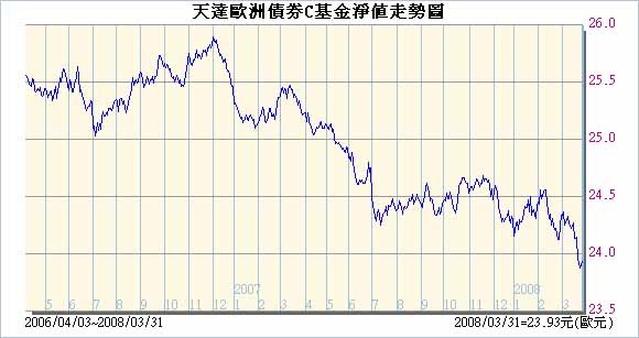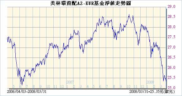 因為匯率的關係,以歐元計價的基金比美元計價的基金,淨值下跌的幅度大的多。
